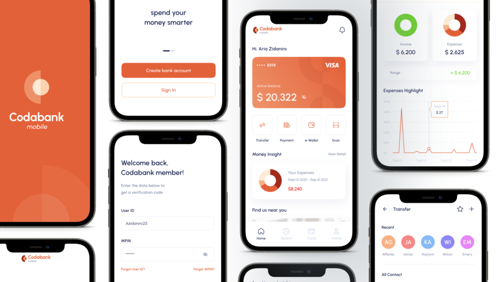 Codabank is mobile banking apps UI Kit with a clean, neat, and modern style that contains 45++ high-quality screens. Available in light mode and easy to use in Figma.
